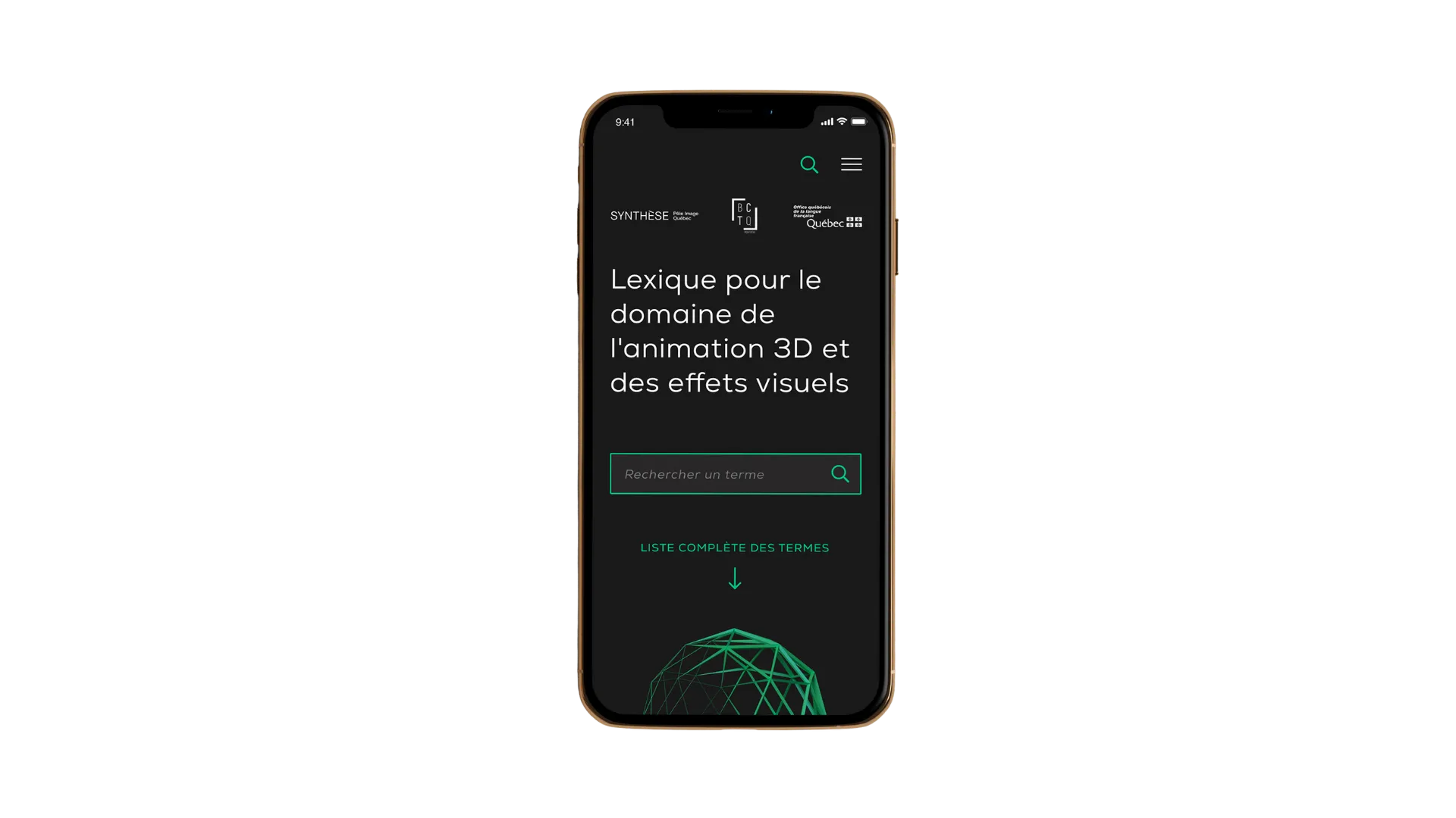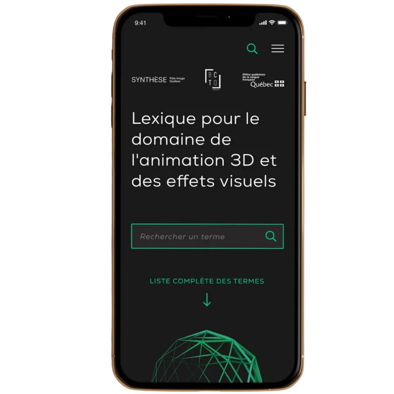 Design et développement web pour un projet de lexique en ligne financé par l'Office québécois de la langue française. La plateforme vise à promouvoir l'utilisation de la langue Française dans l'industrie du 3D et des effets spéciaux..